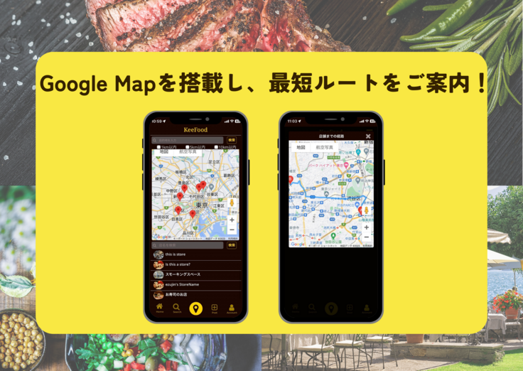 友人「グルメアプリってお店の周辺地図はあるけど、経路がわからないからマップアプリで行き方調べないといけないんだよね。」