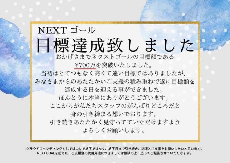 【ご報告】NEXT GOALを超えた支援金の使用用途について