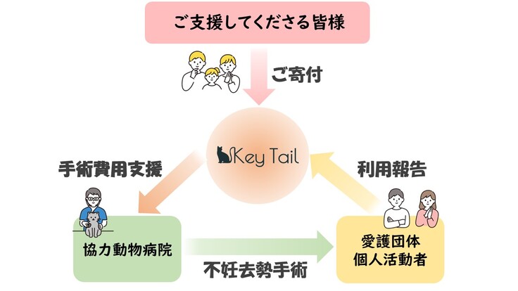 私たちキーテイルは2021年から“野良猫ゼロ。すべての野良猫が幸せな家猫になること”を最終目標に、猫の保護活動、TNR活動、地域猫活動、啓発活動を行ってまいりました。