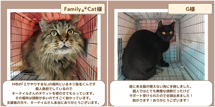 無償でつらいことの多い愛護活動、だからこそ金銭面だけでも負担を減らせるように、猫の命だけでなく、活動者様も守れるようになることが私たちの願いです。