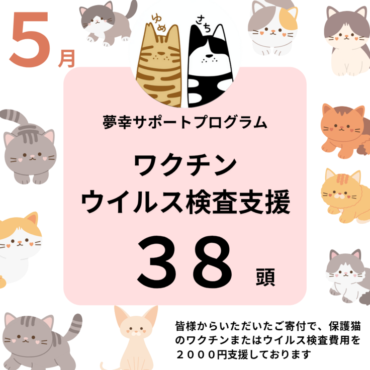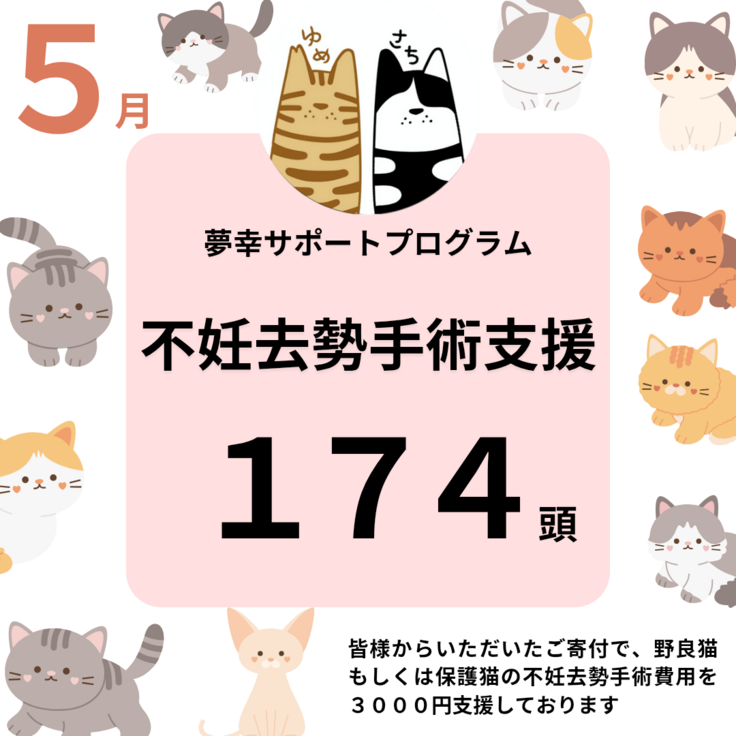 5月も皆様のおかげで212頭の猫ちゃんに支援できました!
