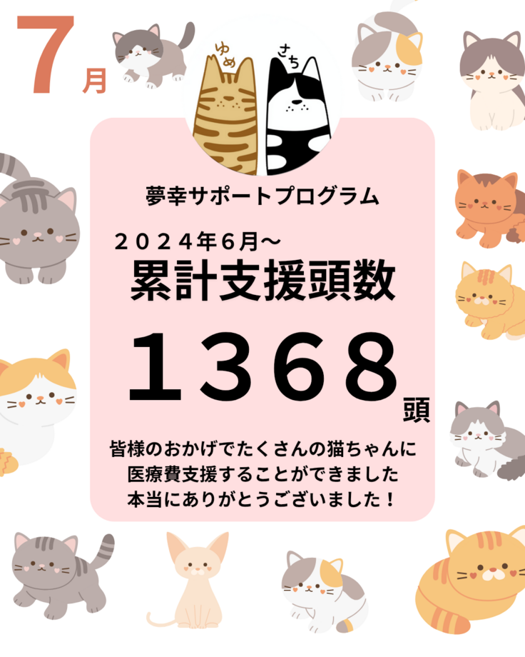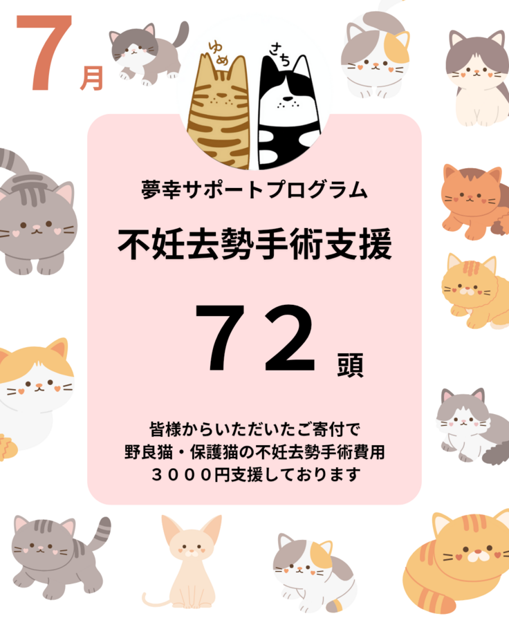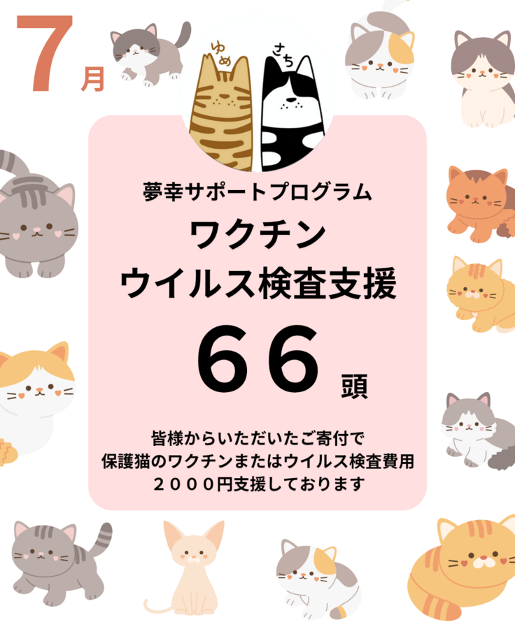 7月も皆様のおかげでたくさんの猫ちゃんに支援ができました!