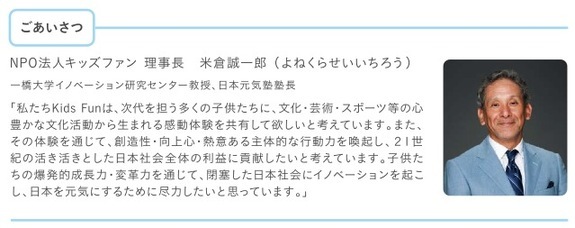 キッズファン理事長 米倉誠一郎氏によるごあいさつ