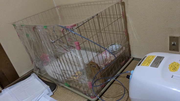金銭面もありますが、専用酸素室だと警戒して入らないかもしれないので馴染みあるケージを利用しております☺️