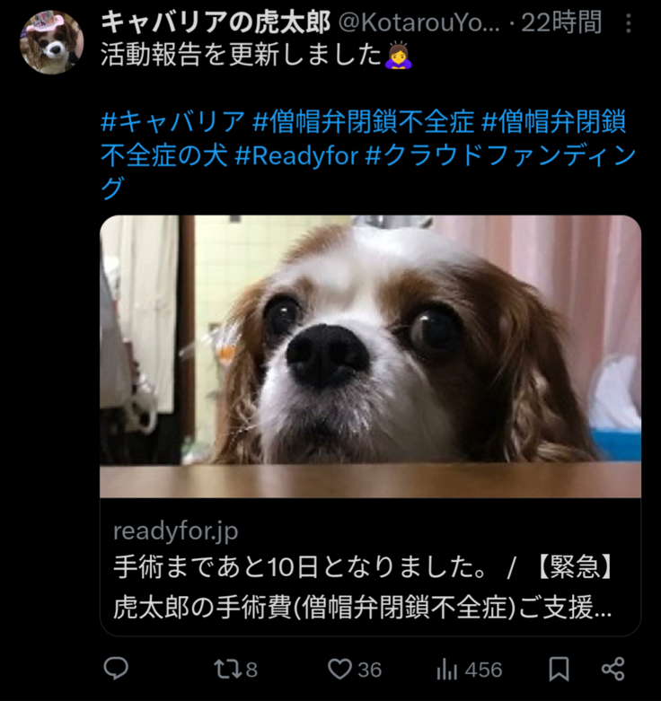 プロジェクトを立ち上げる以前からのアカウントを使用する方、プロジェクト1ヶ月以上前から事前活動している方が多い中、虎太郎が入院中の申請でかなりバタバタして、開始後からようやくSNS活動を始めましたがそれは遅すぎると痛感しました😓(※READYFOR様の手引にもSNSは開始前からやっておくよう書かれております)