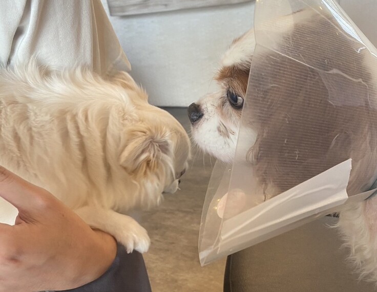 今日は妹チワワの真白ちゃんも病院に面会に行きました。虎太郎は目がしょぼしょぼして眠そうでしたが呼吸も落ち着いております。