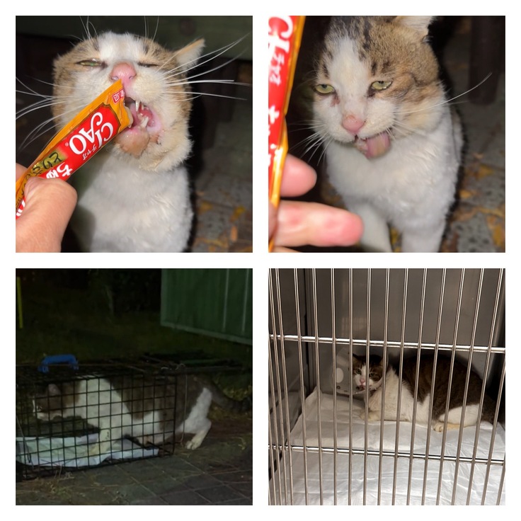 ご飯を食べたそうにしているのに、痛くて食べられず、なんとかチュールだけは少しずつ食べていました。