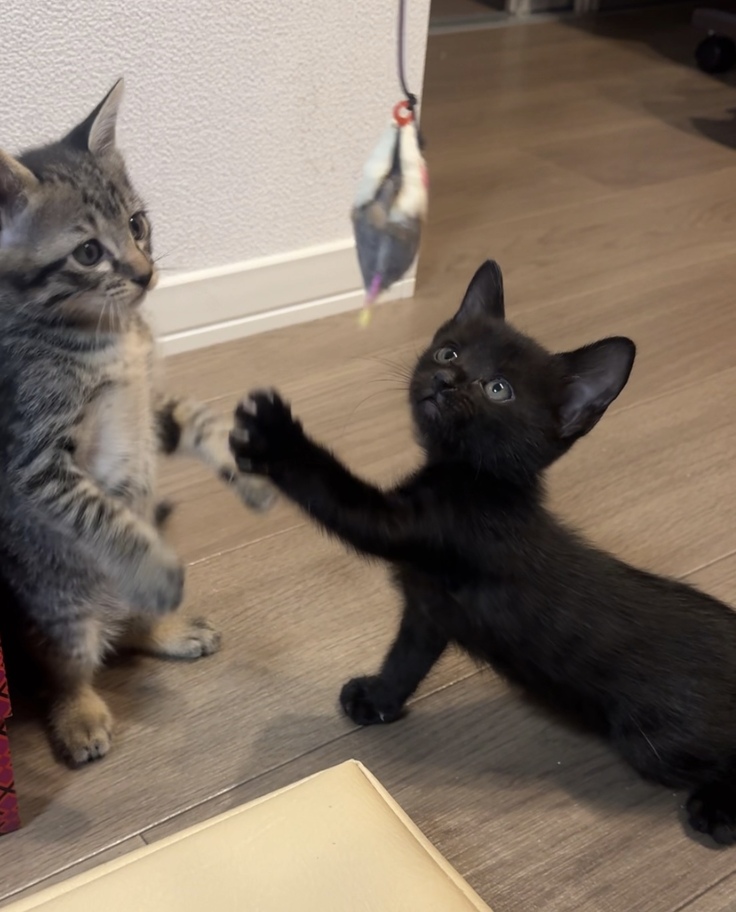 里親様が準備してくださっていた新しいおもちゃやベッドを見て、子猫たちもきっとすぐに慣れてくれるのではないかとワクワクした気持ちで送り出しました。