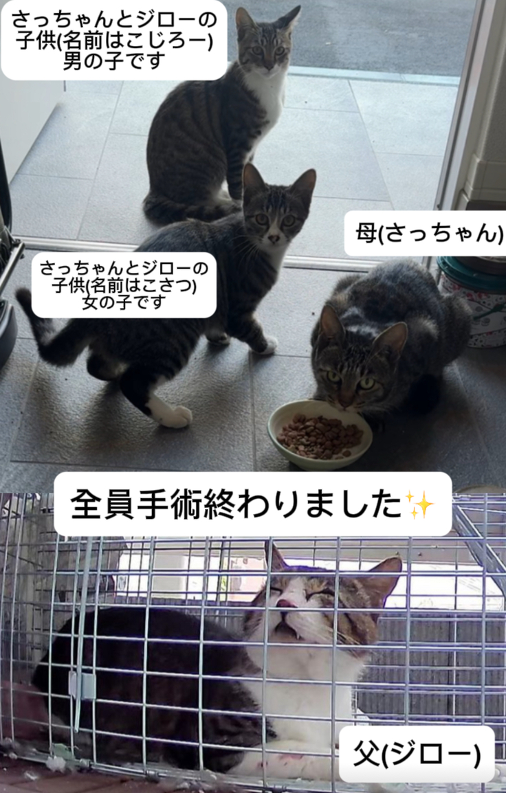 こさつとこじろーの2兄弟だと思っていたらまだ手術の終わっていない子が2ヶ月後に当然現れました。(命名、こさじ)