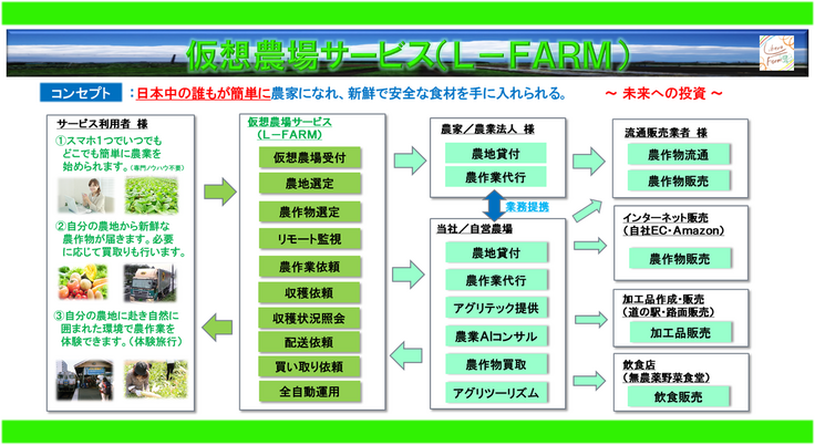 『仮想農場サービス(L-FARM)』はその様な社会課題を解決する為の有効な対策であると確信しています。
