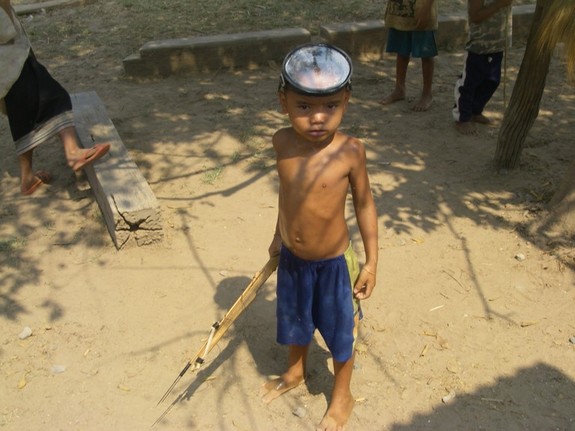 (川での漁に準備万端、凛々しくもかわいい男の子)