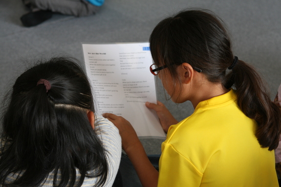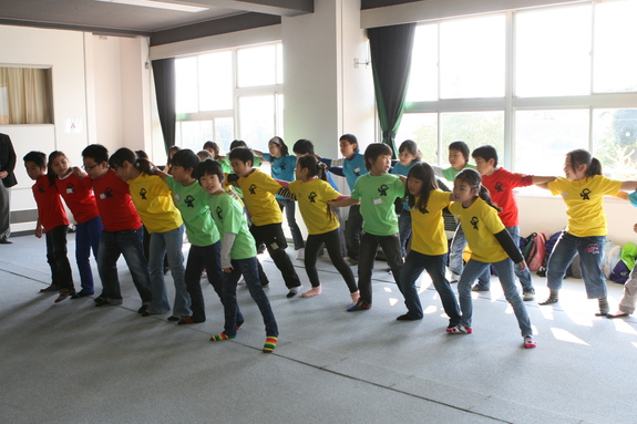 そこで、LCAの3年生達は必死で練習した英語の歌とダンスを披露しました。そして、英語の歌を一緒に歌えるように、少しずつ一緒に歌って覚えてもらいました。2つの学校の小学3年生は同じ歌”We are the world”を一緒に歌うことができました。