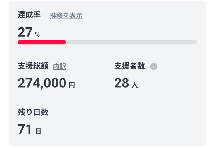 現在28名の方からご支援をいただいております🙂↕️