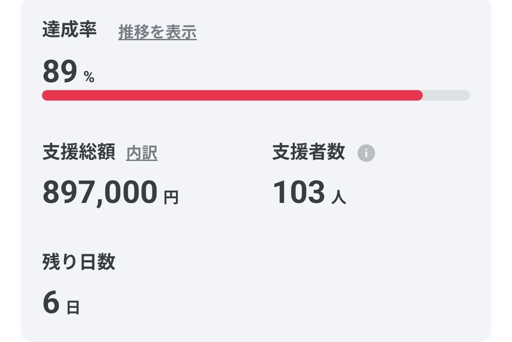 残り6日、あと約10万円でクラウドファンディング達成です✨