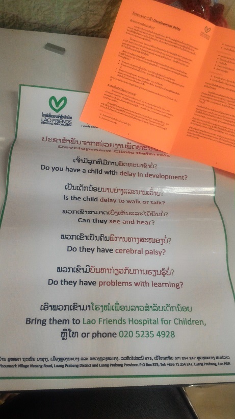 そこで、村長さんのお宅を訪問し、LFHCのDevelopment clinicについて説明をしました。この村に限らず、障がいがあっても「出来ることがある!」ということ説明するためにポスターとリーフレットを作ってあったので、それを村長さんの家と新しくできたヘルスセンターへ貼ってもらえるようお願いしました。今までは不在だったヘルスセンタースタッフも常駐するようになったということなので、いいタイミングです。