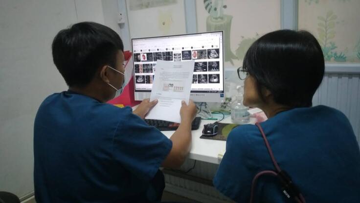 腎疾患クリニックの担当になることを申し出たのには日々来院する腎疾患の患者さんを診ていて、多くの患者さんが、何度も再発を繰り返していたことに『なぜ?』と感じたからだそうです。そして、担当医となってからより患者さんを取り巻く状況や環境など詳細の情報を得ることで、その原因は薬の内服がきちんとされていないことや、疾患に関する理解が十分でないことであることが分かってきたそうです。「どうにか改善していきたいと取り組んでいる」と言って、患者さんへ分かりやすく説明する時に使っている教育用シートを見せてくれました。外来の診療室に設置されているパソコンを使って、オンラインでその場で教材となりそうな情報も得ながら説明をしていると言っていました。