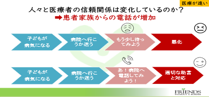 つまり信頼関係です。命に関わる治療やケアを委ねることができるのは、やはり信頼関係が必須です。助けてもらいたいと思ったときに、足を運ぶのは信頼のおける医療者だと思います。心の距離を数値で測ることはできませんが、近づいていることの一つの指標にできそうなのは、『電話の本数』です。