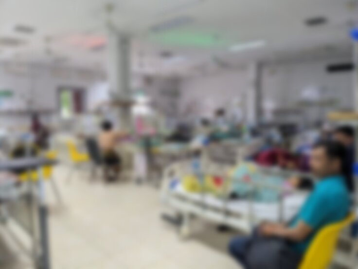 こちらは、一般の入院病棟の写真です。(プライバシー保護のためにぼかしを入れています。)大部屋になっており、現在大小合わせて26ベッドがこの部屋に設置されています。日本では大きくても6人や8人部屋でしょうか。できるだけたくさんの患者さんを受け入れるには、小さい部屋をたくさん作ることはできず、このような形になっています。これでも足りず、廊下にもベッドを並べているのが現状です。