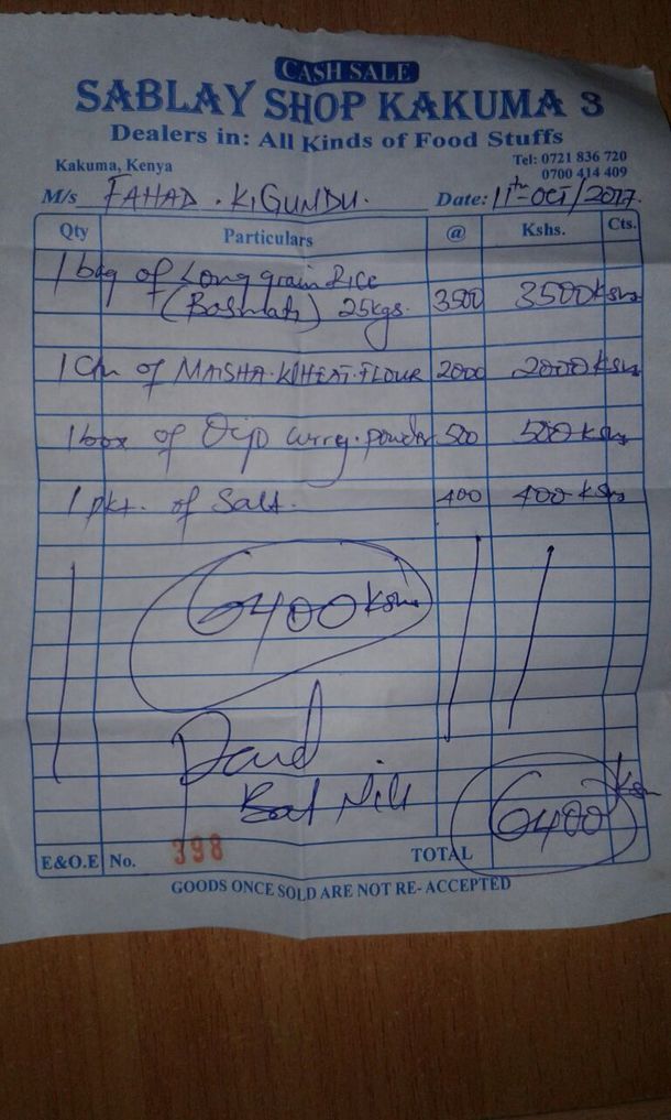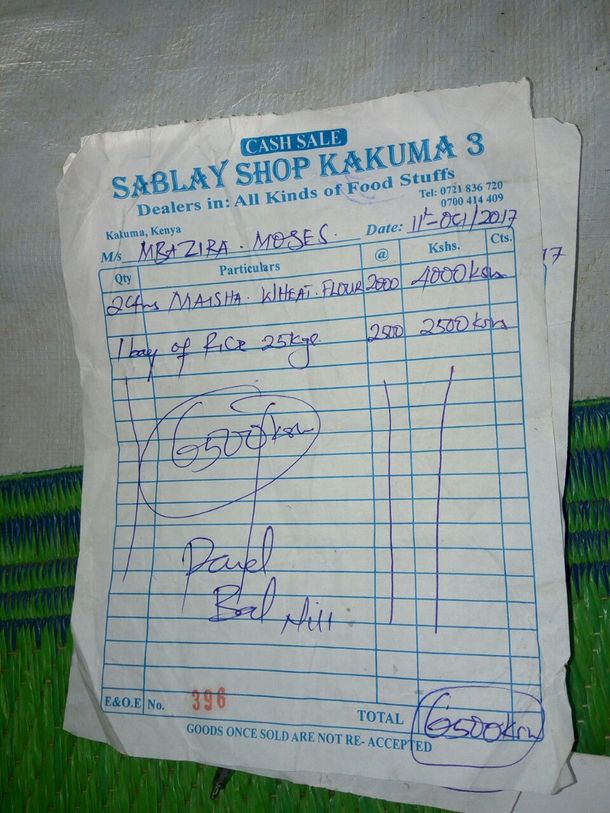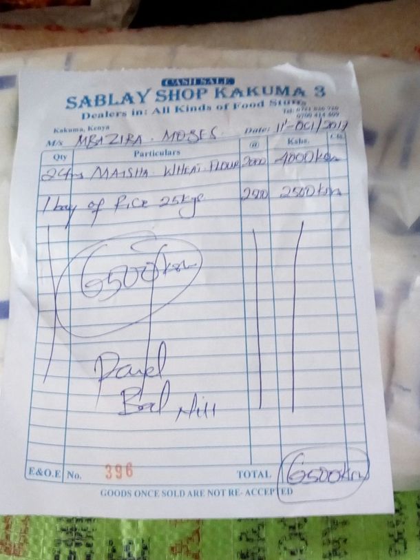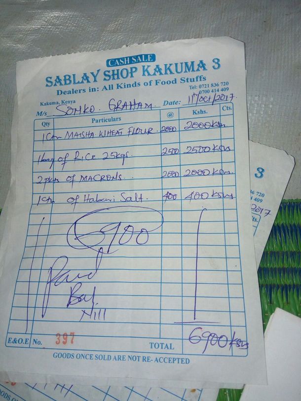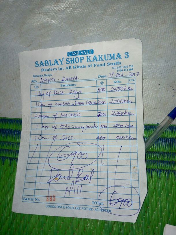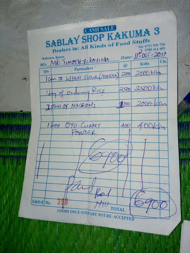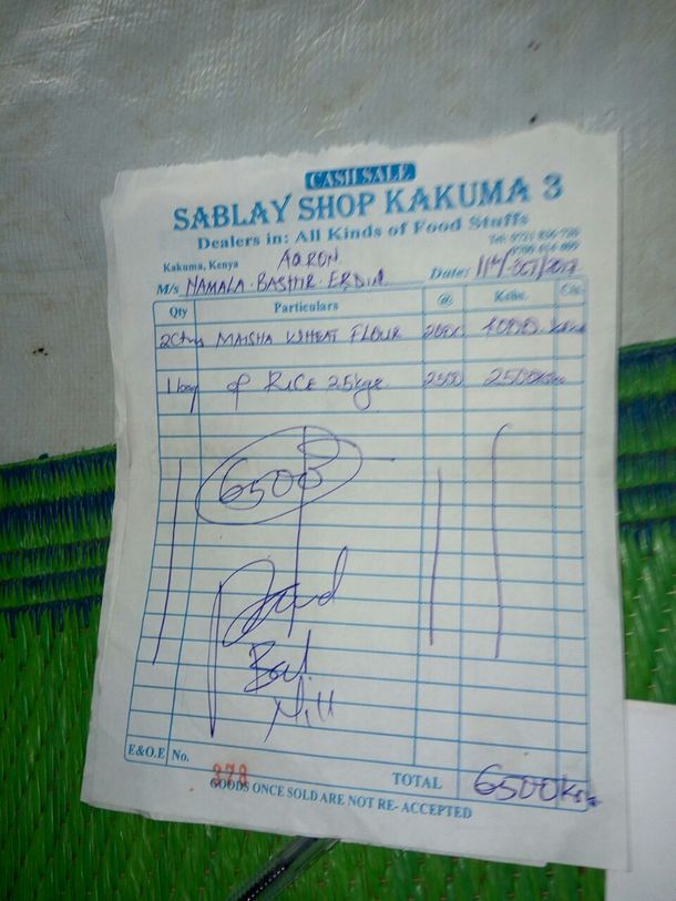 カクマ難民キャンプの市場では、食料はレシートがもらえます。