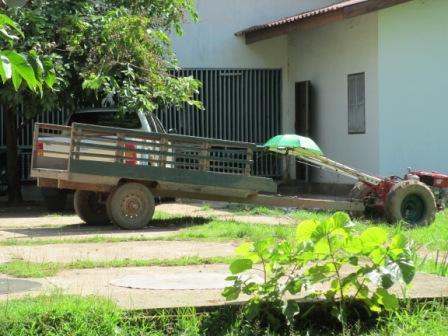 病院の裏庭でのスタッフ研修中に、救急患者を搬送してきた農耕車両