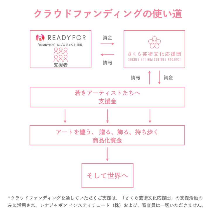 日本のアーティストを育むプロジェクトとして活動をつづける「さくら芸術文化応援団」の14年目春のチャレンジがスタートします。入賞作品を商品化し、その作品を応援購入していただくことで、みなさまと一緒に日本のアーティストを支援していきたいと思っています。