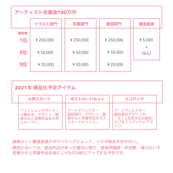イベント内容 オンラインアートイベント「あなたのさくら色コンテスト 2021」の開催と、入賞作のコラボ商品の発表