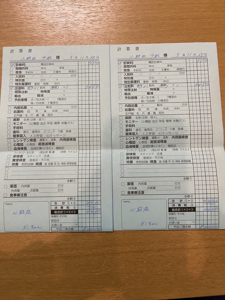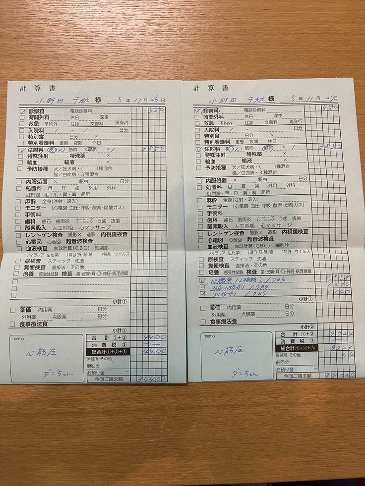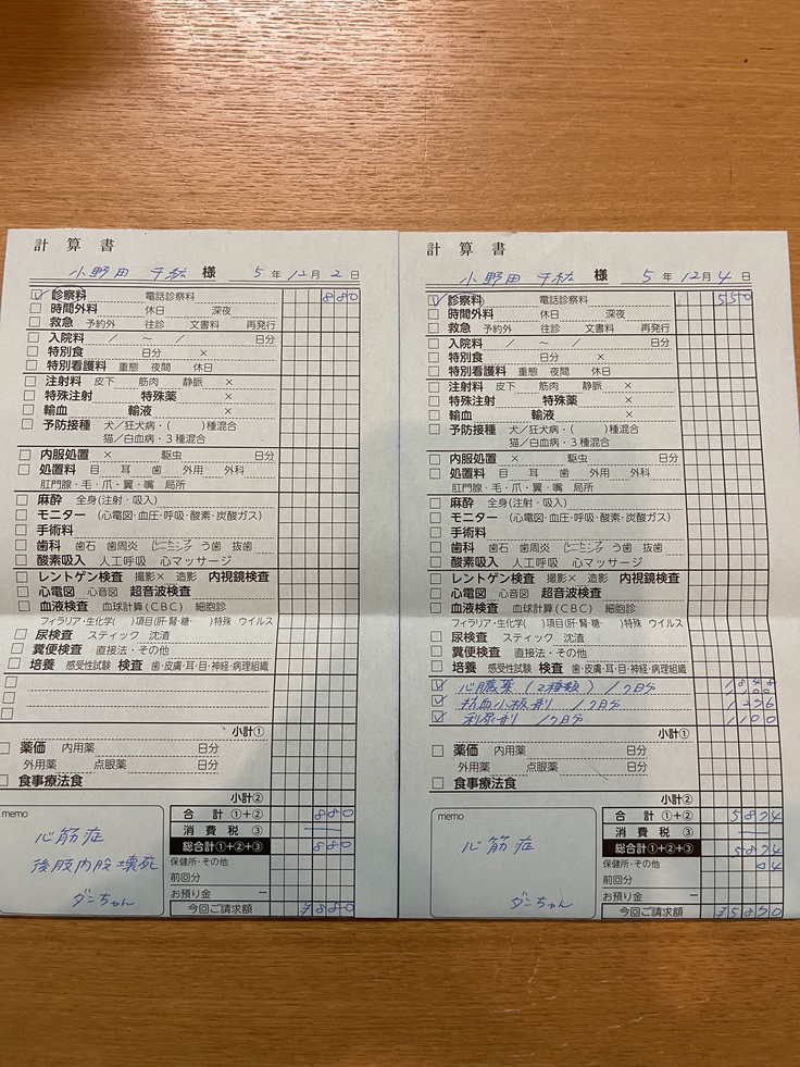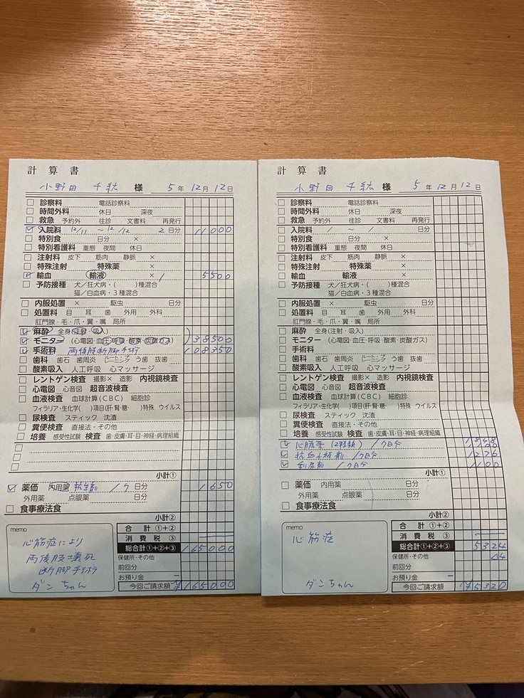 ・3ヶ月の心臓病の薬代 63,840円(税込)