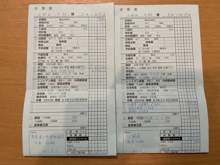 ページ上に掲載している診断書や診療明細書などの資料は全て動物病院から掲載の許諾を得ております。