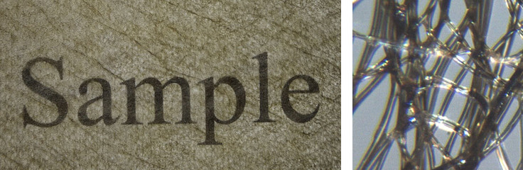 処理例1、非常に薄い素材に被覆処理を行っているので、下の紙に書かれている文字を