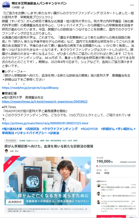 昨日、パンキャンジャパンさまのFacebookにも、私どものプロジェクトを取り上げて頂きました。力強いご後援を頂きまして、大変感謝しております。