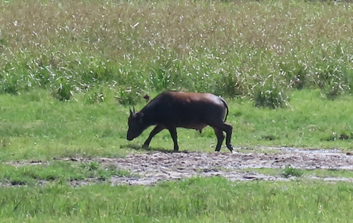 そして、今回の視察の最大の目的、プチ・サバンナのマルミミゾウたちは、昨年同様、健在でした!! ですので、プチ・サバンナもカヤツリグサがしっかり食い荒らされたまま、去年の視察ビデオそのままに奥まで素通しで、シロクロコロブスやイボイノシシ、シタトゥンガなど馴染みの動物たちが、よく観察できました。