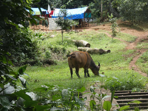 ゾウ自身もさらにリラックスしたようで、なんと私たちが泊まった翌朝、すでに陽も上がった6時半に、バイに食事と水浴びにやってきました! 以前はどう頑張っても、夜中の人間は寝静まった時間帯にしか、出てきてくれなかったゾウたちがです!!
