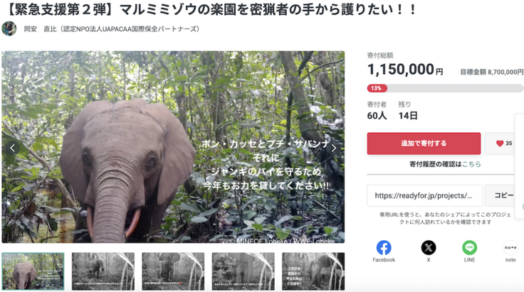 その防止には、遠い日本からも見ている目がある、ということをアピールしていくことも効果があります。クラウドファンディングを通じて、皆さまのご支援がロベケに届けられていくことは、国立公園当局だけでなく、地元のコミュニティにも十分伝わるところとなり、それが繰り返されることで抑止効果を強化できるのです。