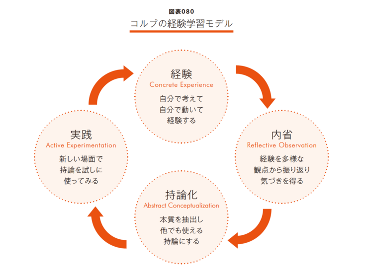 人間が学習し成長するには「経験」が必要なのです(図表080コルブの経験学習 坪谷邦生『図解人材マネジメント入門』)。