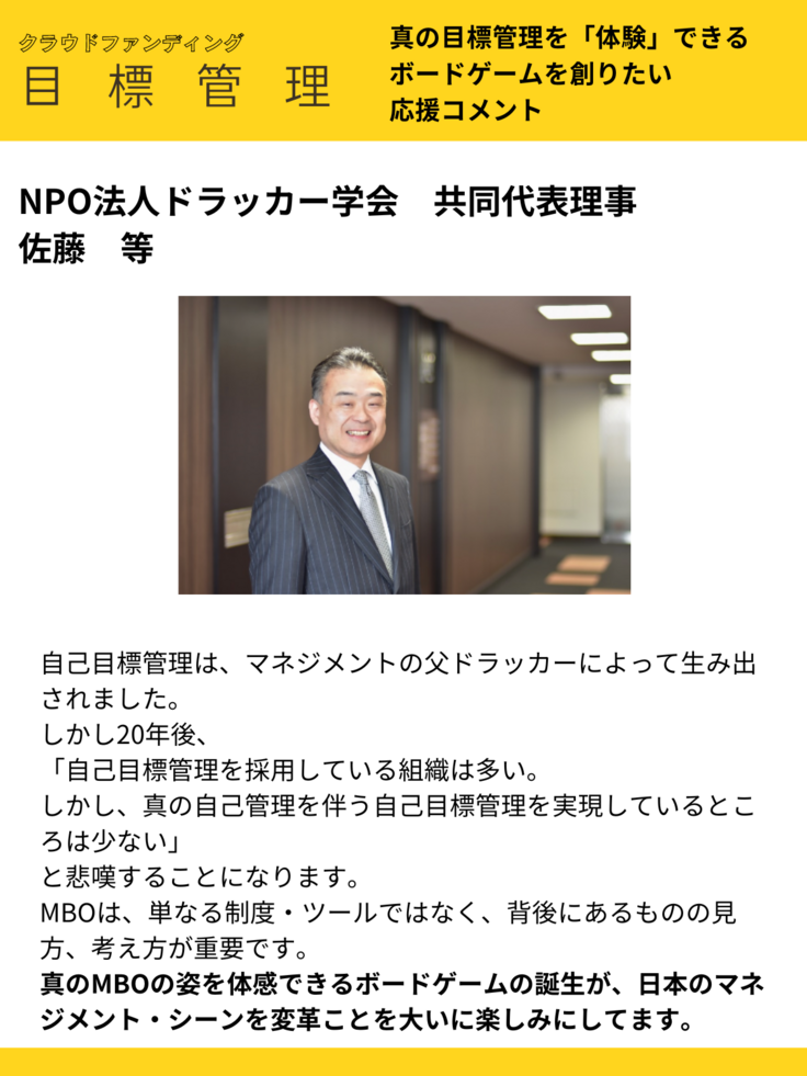 応援コメントvol.1 NPO法人ドラッカー学会 共同代表理事 佐藤 等 様