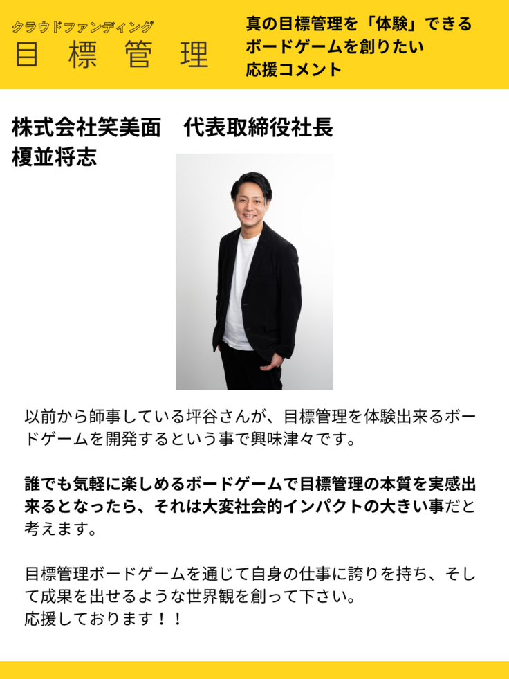 応援コメント vol.15 株式会社笑美面 代表取締役社長 榎並将志 様