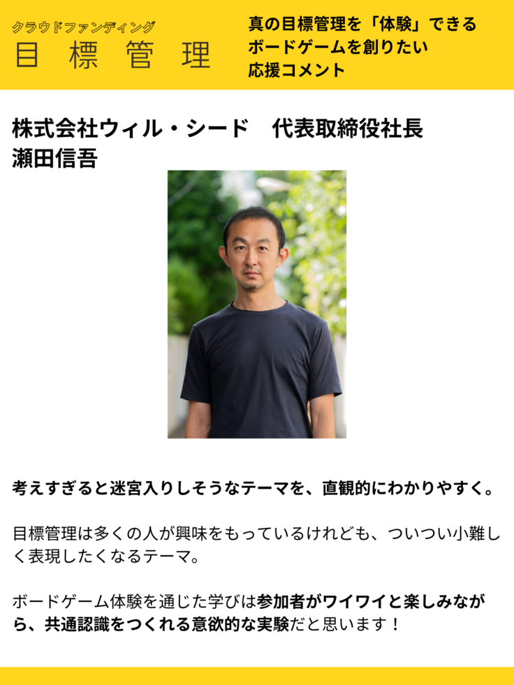 応援コメント vol.16 株式会社ウィル・シード 代表取締役社長 瀬田信吾 様