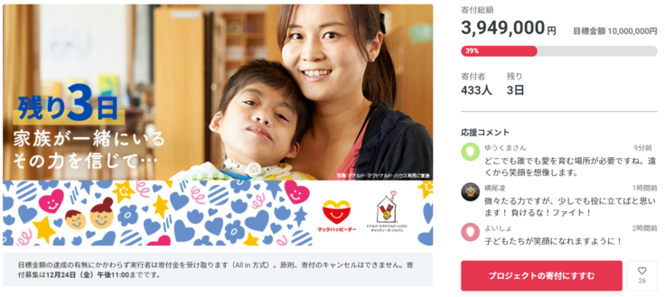 12月24日(金)23時のプロジェクト終了まで、残り僅かです。