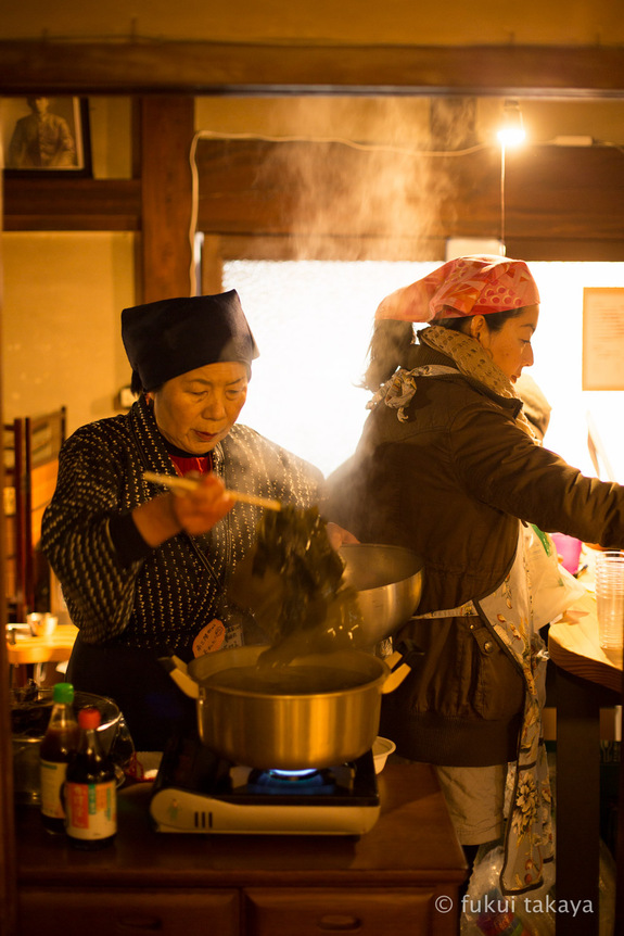 キッチンチームの方では、民子さんに送ってもらった牡蠣を蒸し牡蠣にして、