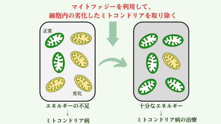 このプロジェクトでは、細胞内のマイトファジーという仕組みを利用して、ミトコンドリア病をはじめとする病気の治療法開発につなげるべく、研究資金を集めています。