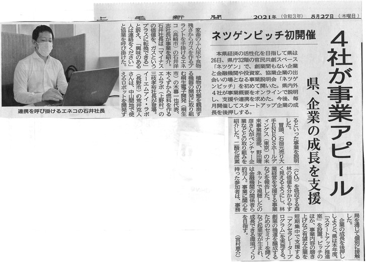 先日の群馬県主催のピッチの様子が上毛新聞さんに掲載いただきました。無料会員登録するとアーカイブをご覧いただけるよう事務局が準備をしています。