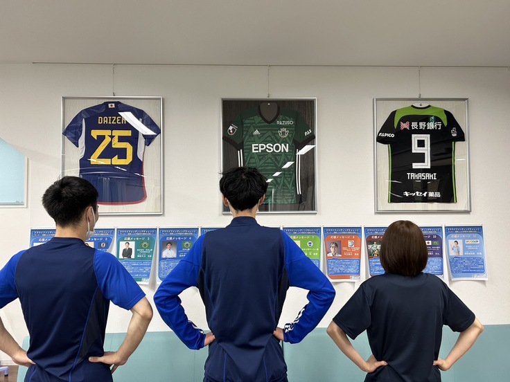 全天候型人工芝フィールドを利用し、アスリートの障害予防と地域の方々のさらなる健康増進に貢献するため、我々スタッフは日々研鑽を積んでおります。クリニックには3名の新人スタッフがいますが、彼らは人工芝フィールドと一緒に地域の未来をつくる存在です。