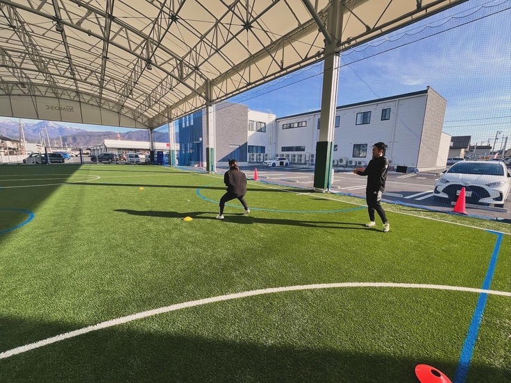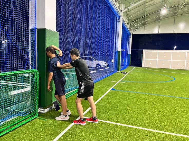 また広いスペースがあるので、ボールを投げたり、ボールを蹴ったり、様々なスポーツ競技に特化した動作をチェックすることができます。メディカルフィットネス会員さんのトレーニングの場としても活用しています。