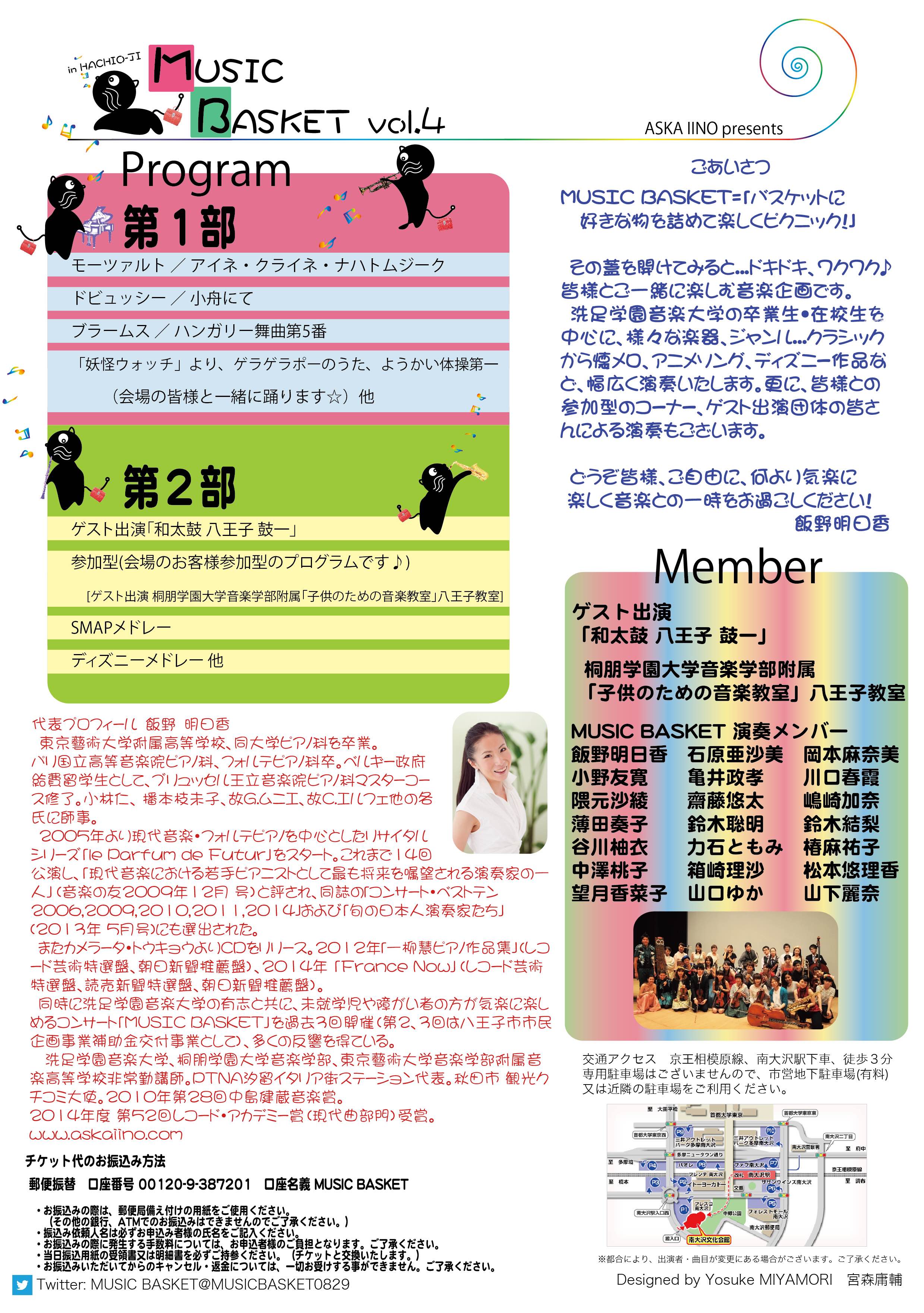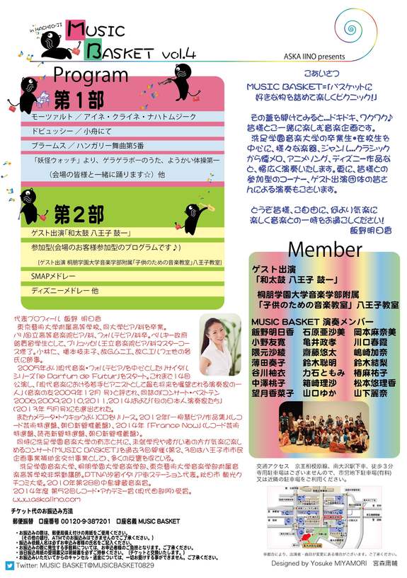 本日はコンサートのチラシを掲載します。このチラシは、「どなたでもお楽しみいただけるコンサート」という私達の演奏会のコンセプト、雰囲気にぴったりなものとなっております♪