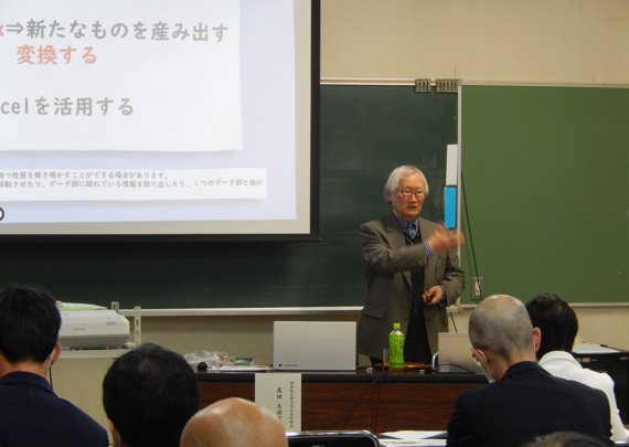 これは2024年1月24日、日田市のSSHの高校で「STEAM空間と理数探究」について高田が講演をしたときの様子です。高校の先生方を前に、STEAMの「A」について理解を深めていただきました。