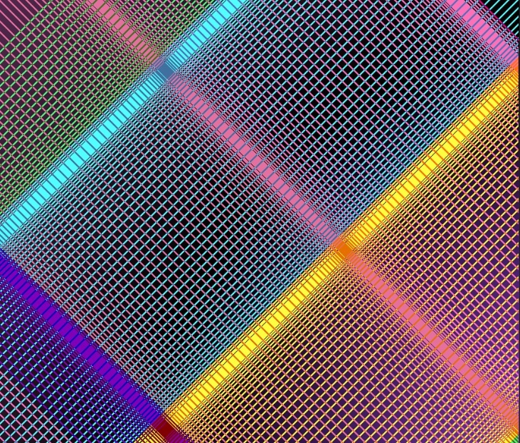 この作品は(X+Y)の直性の性質をグラフィックに描いたもので、格子の美しさが表現されています。