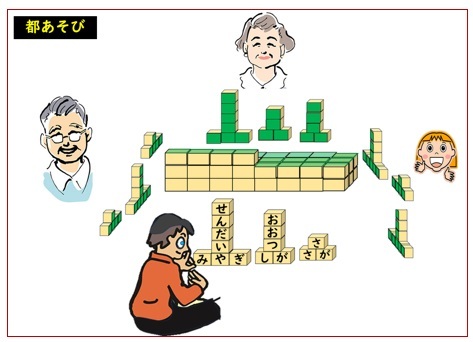 「都あそび」には6種類ほどの遊び方があるのですが、そのうちの「三都ものがたり」は小学生はもとより大人にとっても、ハラハラ・ドキドキ、とても楽しい積木のゲームです。