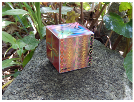 自分で描いた Math Art 作品を木のキューブに張り付けて楽しむことができますね。