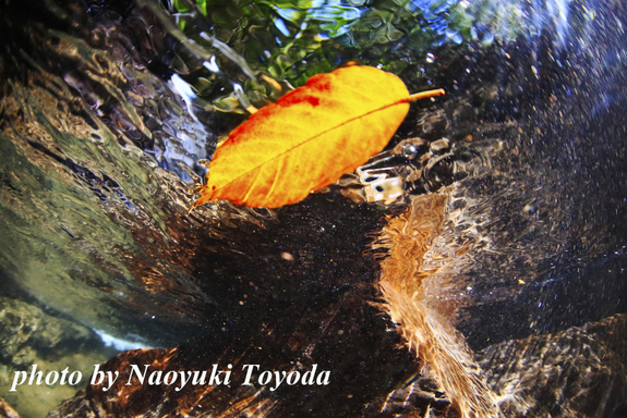 現在、静岡県の安倍川の支流・藁科(わらしな)川を取材中です。今日の写真は、藁科川の上流にある福養の滝の水です。キレイな水に、身も心も洗われています。