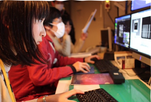 仙台市天文台の ”ひとみ望遠鏡” を用いた天体観測実習風景。